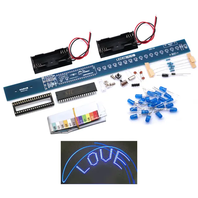 16 Bits POV LED Stick Light Rocker Diy Kit Shaking STC89C52 51 Microcontroller Electronic Solder Kits Blue/Red Display